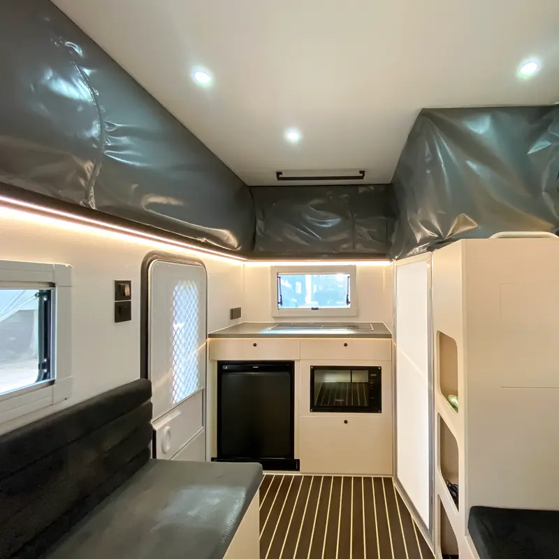 The HC-C212 Off Road Hybrid Caravan is the ultimate tool for accessing and enjoying the world’s most pristine corners. Its heavy-duty off-road suspension, high-clearance chassis, and all-terrain tires are purpose-built to handle rugged tracks.